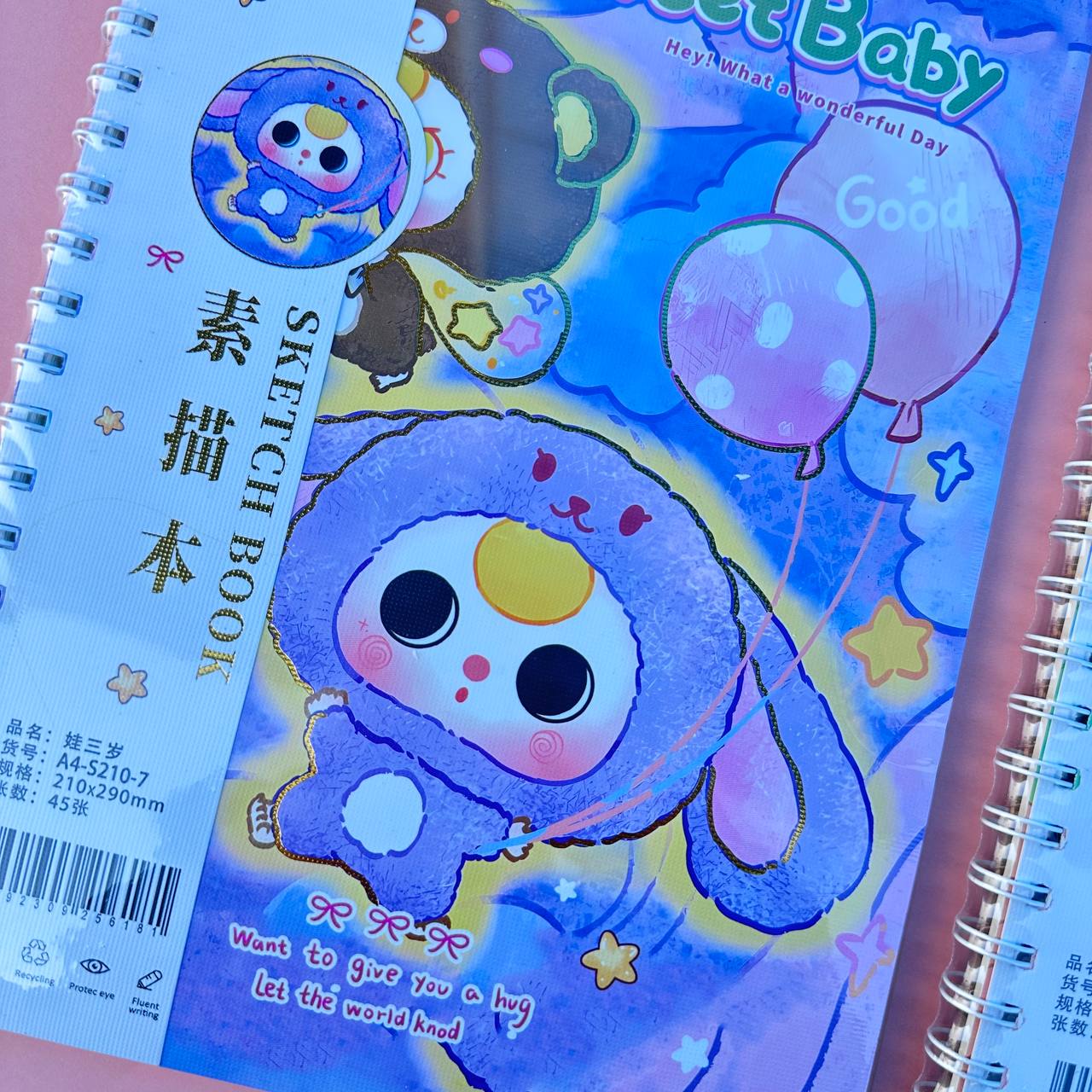 Ideal para pequeños artistas, esta croquera de Baby Three cuenta con hojas blancas y papel de alta calidad, perfecta para dibujos, bocetos o pintura. Sus adorables diseños la hacen aún más especial para coleccionar y crear sin límites.