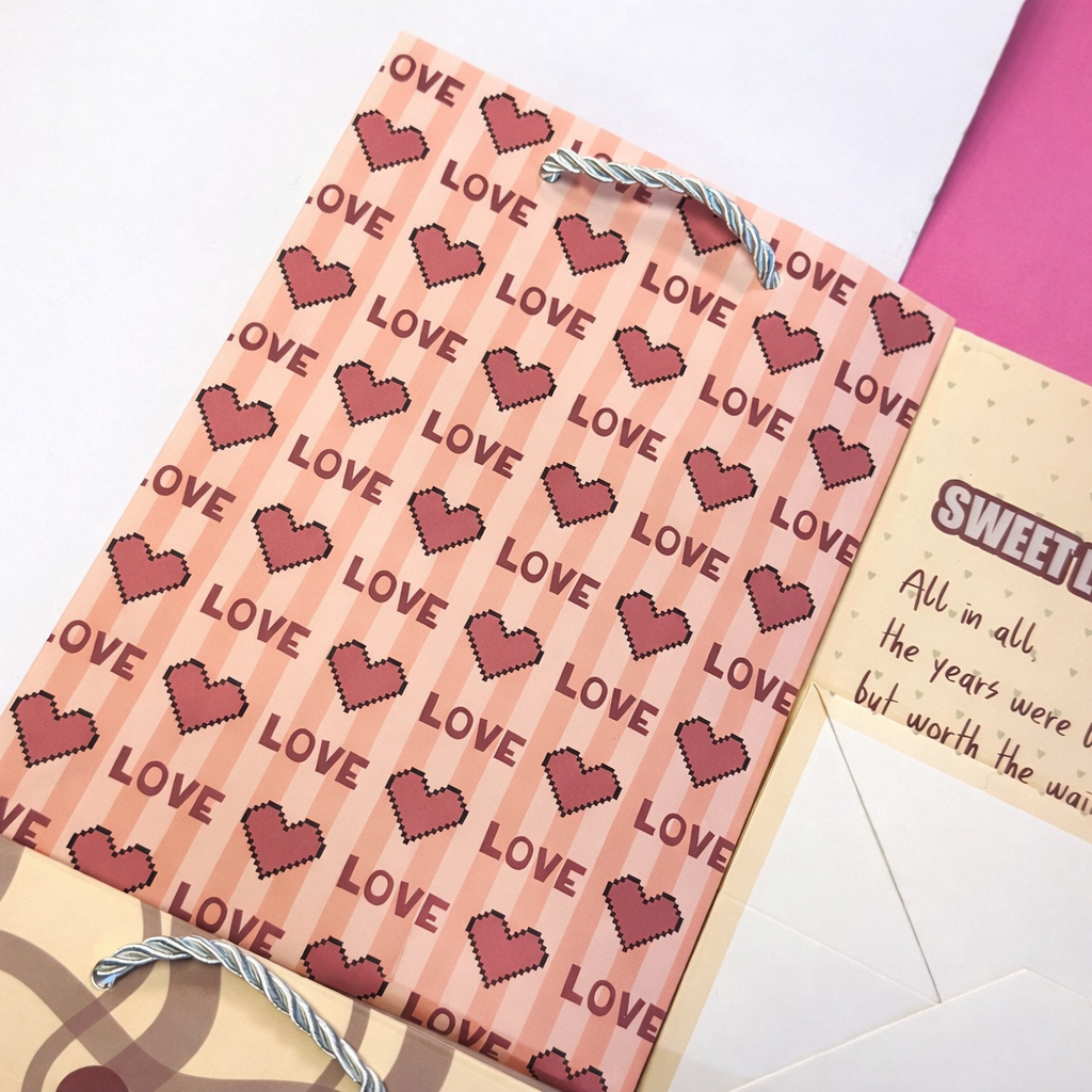 Haz que tus regalos luzcan aún más especiales con la Bolsa de Regalo Día del Amor Pequeña, perfecta para envolver detalles con un toque romántico y delicado. Su diseño pensado para ocasiones especiales como San Valentín, aniversarios, cumpleaños o detalles sorpresa, la convierte en un complemento ideal para regalos pequeños.