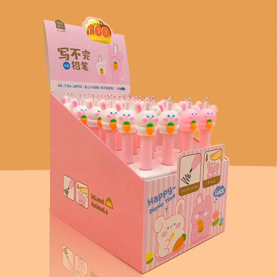 Descubre el Lápiz Retráctil Infinito de Conejo, un accesorio práctico y encantador para tu escritorio. Con un diseño divertido y una escritura suave, este lápiz es perfecto para quienes buscan funcionalidad y estilo en su material de oficina.