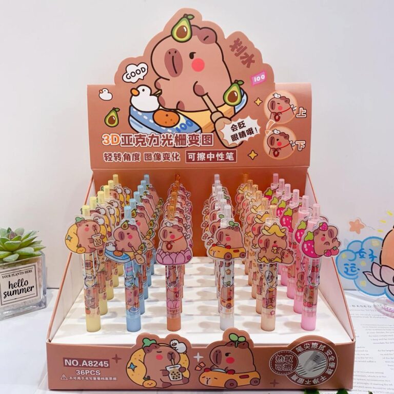 Un lápiz borrable con diseño de capybara y una encantadora insignia transparente. Ideal para escribir…