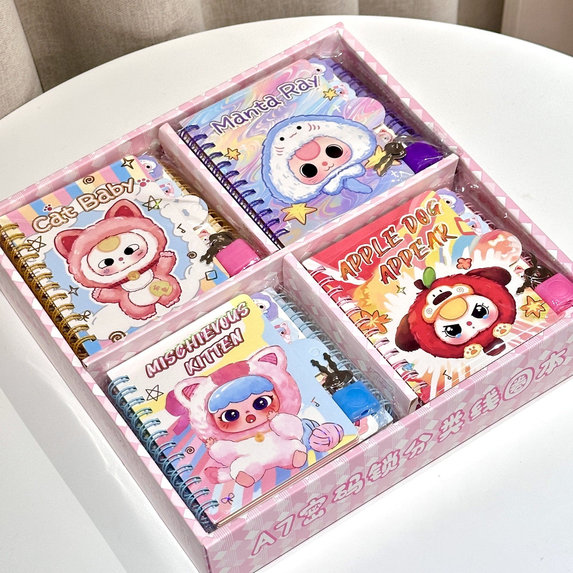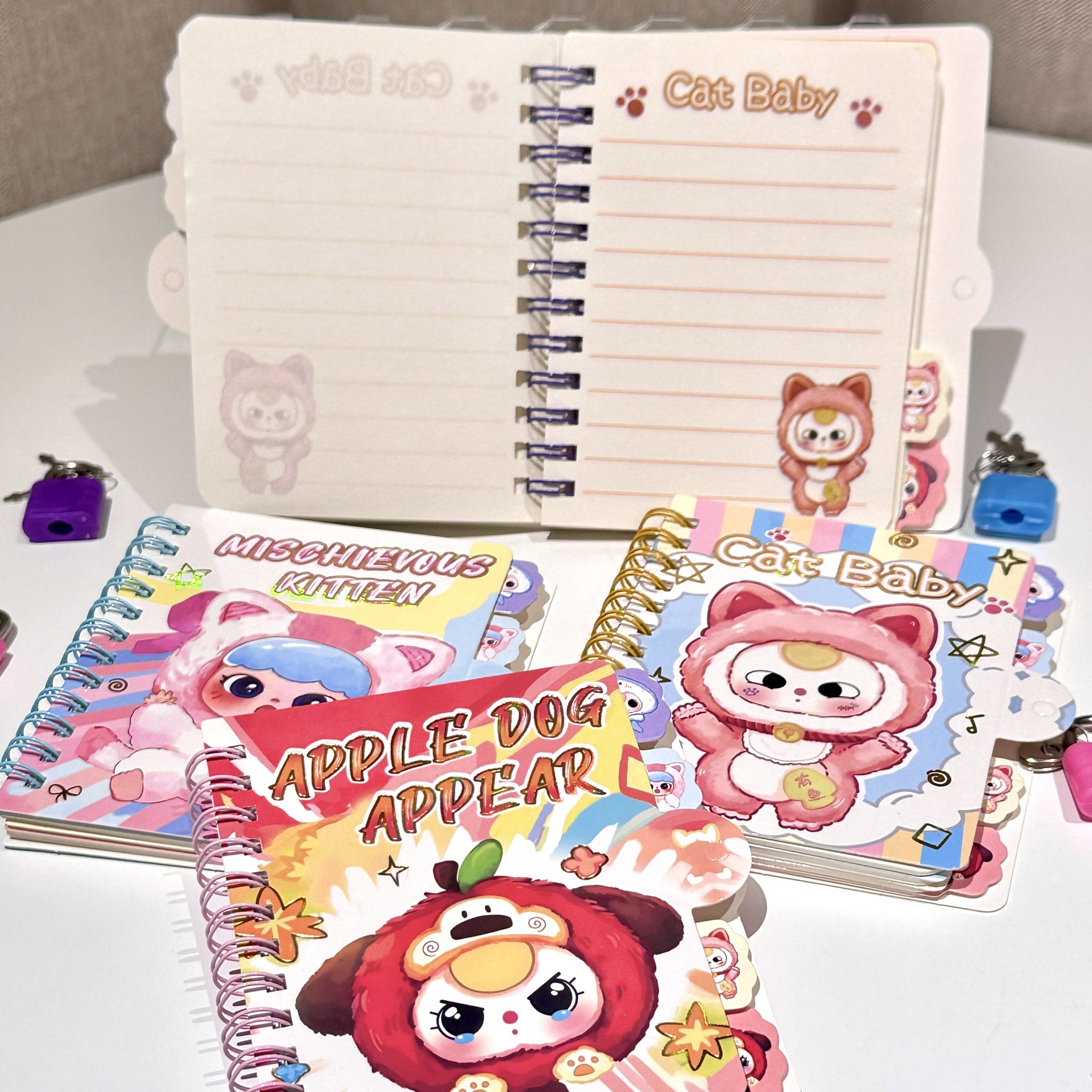 Guarda tus notas y secretos con estilo en esta adorable libreta con seguro de Baby Three. Con páginas internas de colores y un diseño compacto, es ideal para llevar a todas partes. ¡Perfecta para los amantes de lo kawaii!