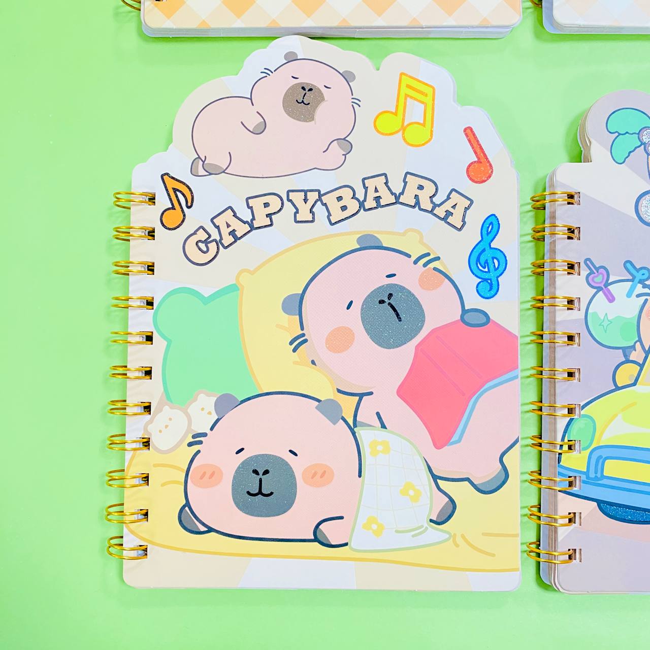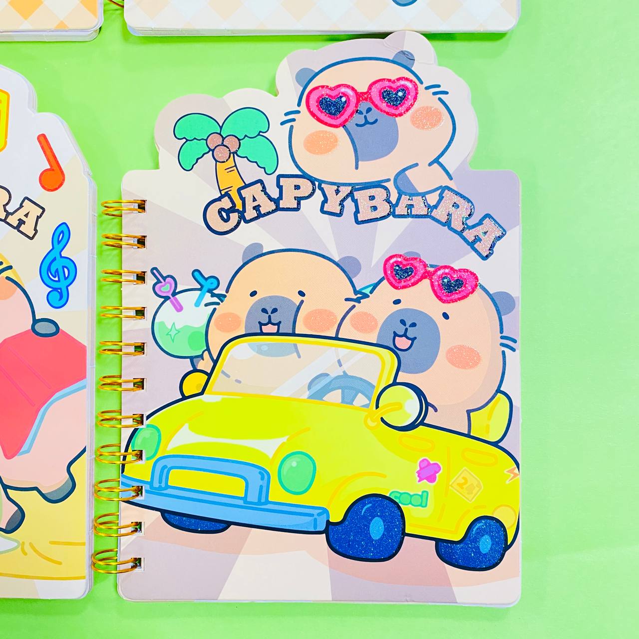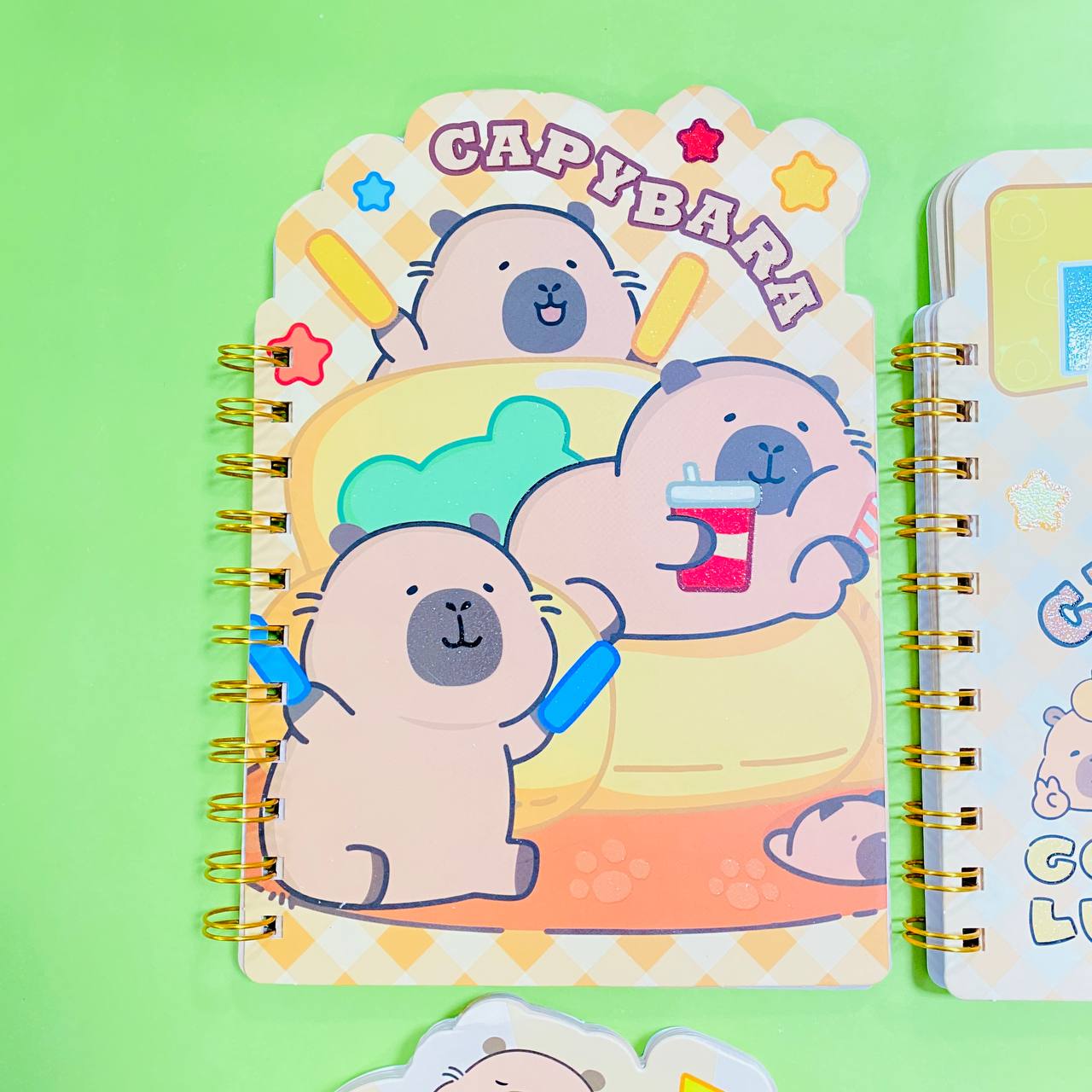 Una adorable mini libreta inspirada en el tierno mundo de las capybaras. Su diseño en tonos café y su tamaño compacto la hacen ideal para llevar a todas partes y anotar lo que necesites con mucho estilo kawaii.