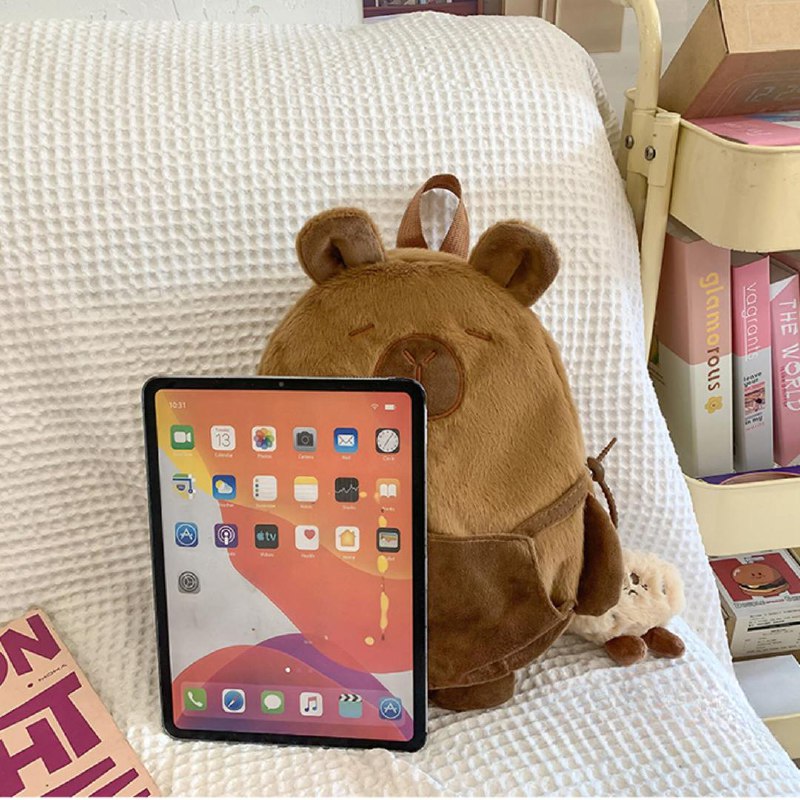 Mochila kawaii con forma de capybara, perfecta para llevar tus objetos esenciales con comodidad y estilo. Su diseño encantador y materiales resistentes la hacen ideal para el día a día.