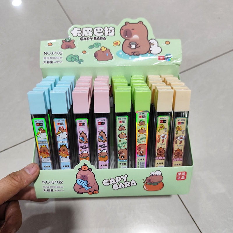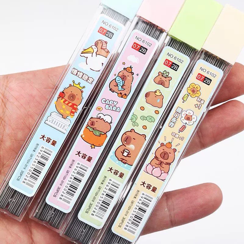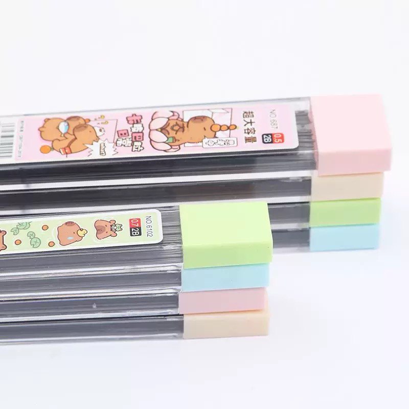 decorados con adorables diseños de capybara. ¡Perfectos para recargar tu portaminas favorito con estilo kawaii!