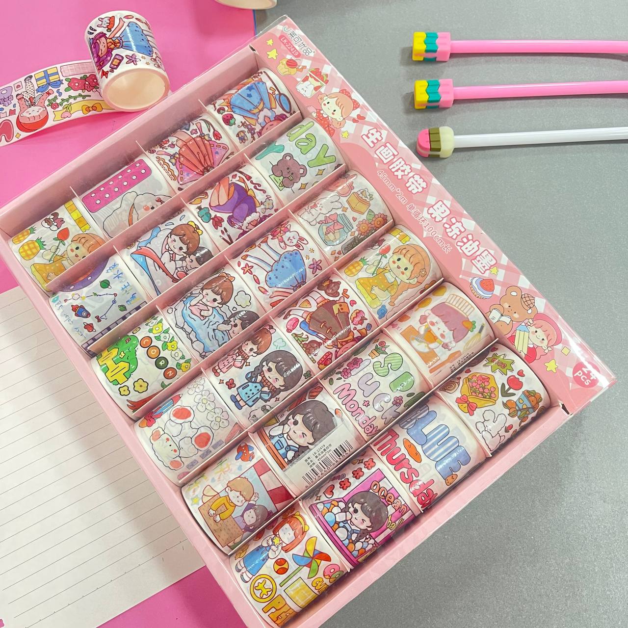 Rollo Washi tape papel Rosados 2 mts 24 modelos
